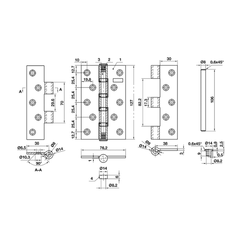 Thông số kỹ thuật của bản lề lá Bauma 926.20.352