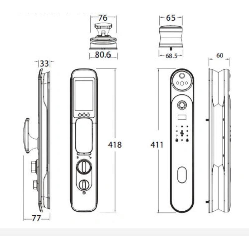 - Kích thước thân khóa trong (R x C x D): 80.6 x 418 x 77 mm