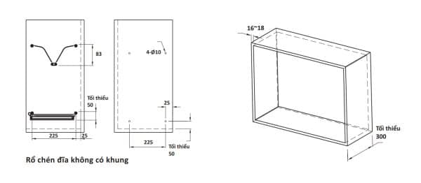 - Chiều sâu lọt lòng (S): Tối thiểu 300